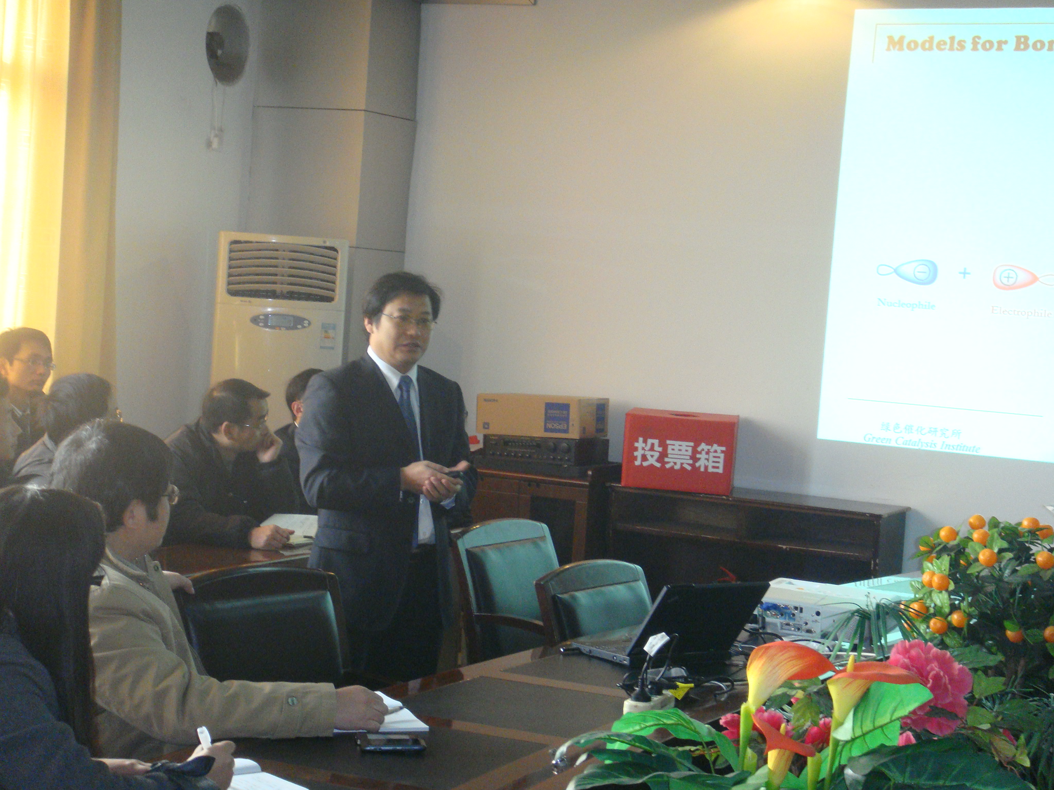 雷教授指出了传统亲电试剂与亲核试剂相互偶联的特点,创造性提出了亲核试剂之间偶联的可能性及理论分析,详细介绍了他带领的课题组在还原消除和氧化偶联反应所作的探索过程及重大科研成果,初步阐述了这两种偶联反应的机理,反应速率常数及反应生成焓等科题,填补了这一领域学术空白;最后报告从原子经济性、绿色化学角度介绍了目前他们取得成功的绿色氧化偶联反应实例。