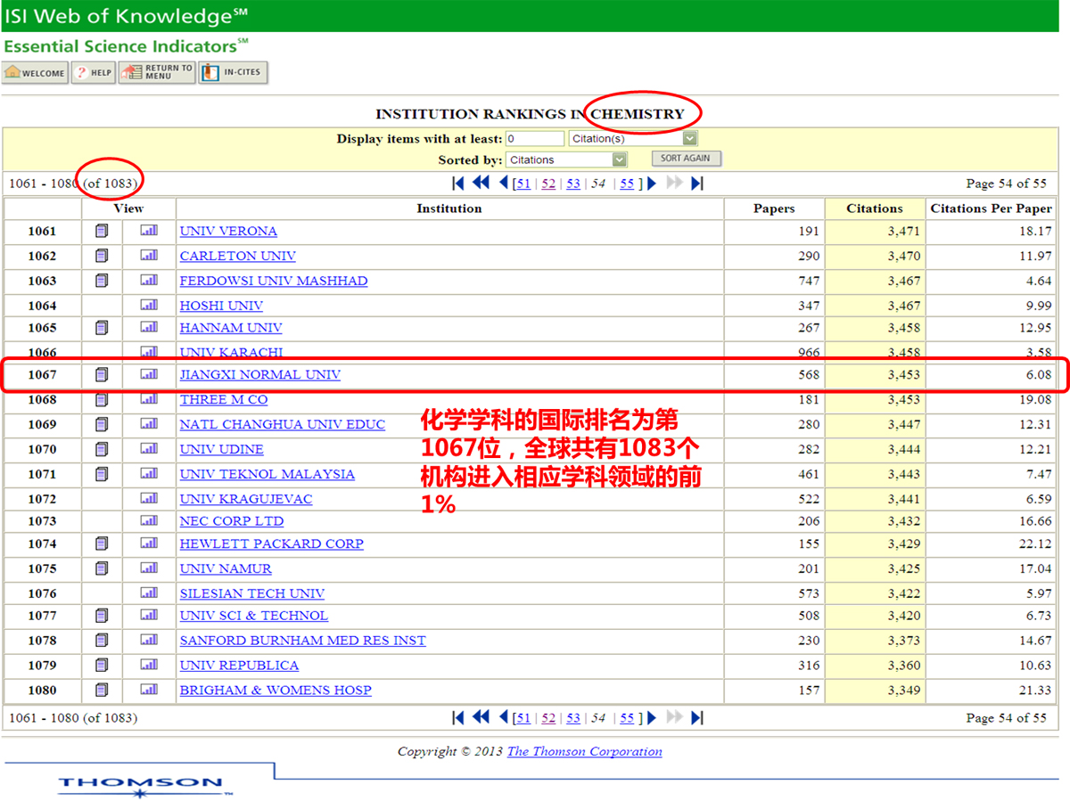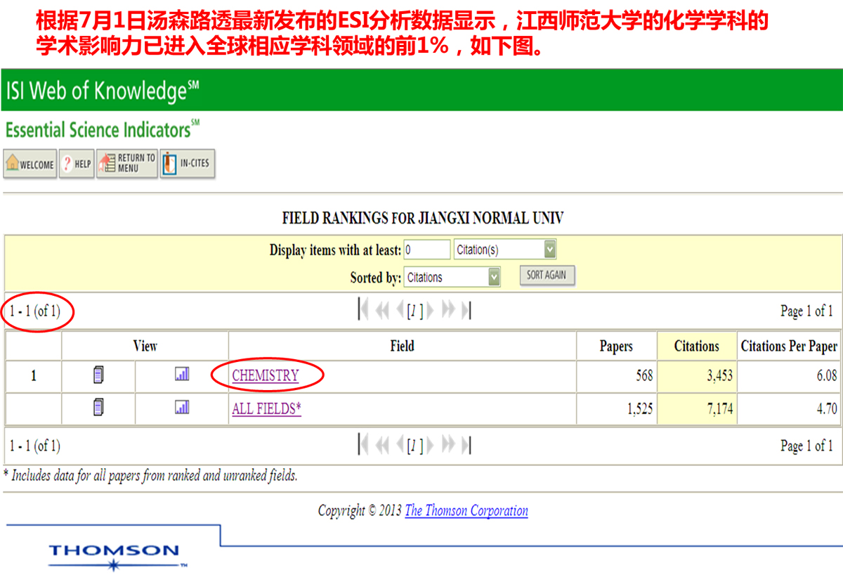 化学学科科研论文学术影响力进入全球前1%