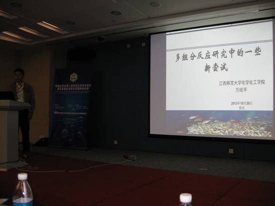 受大会组委会邀请,我院万结平老师参加了10月17至20日在重庆举行的第八届全国有机化学化学会议并做了题为“多组分反应研究中的一些新尝试”邀请报告,将自己的研究工作和来自全国各地的同行进行了交流。