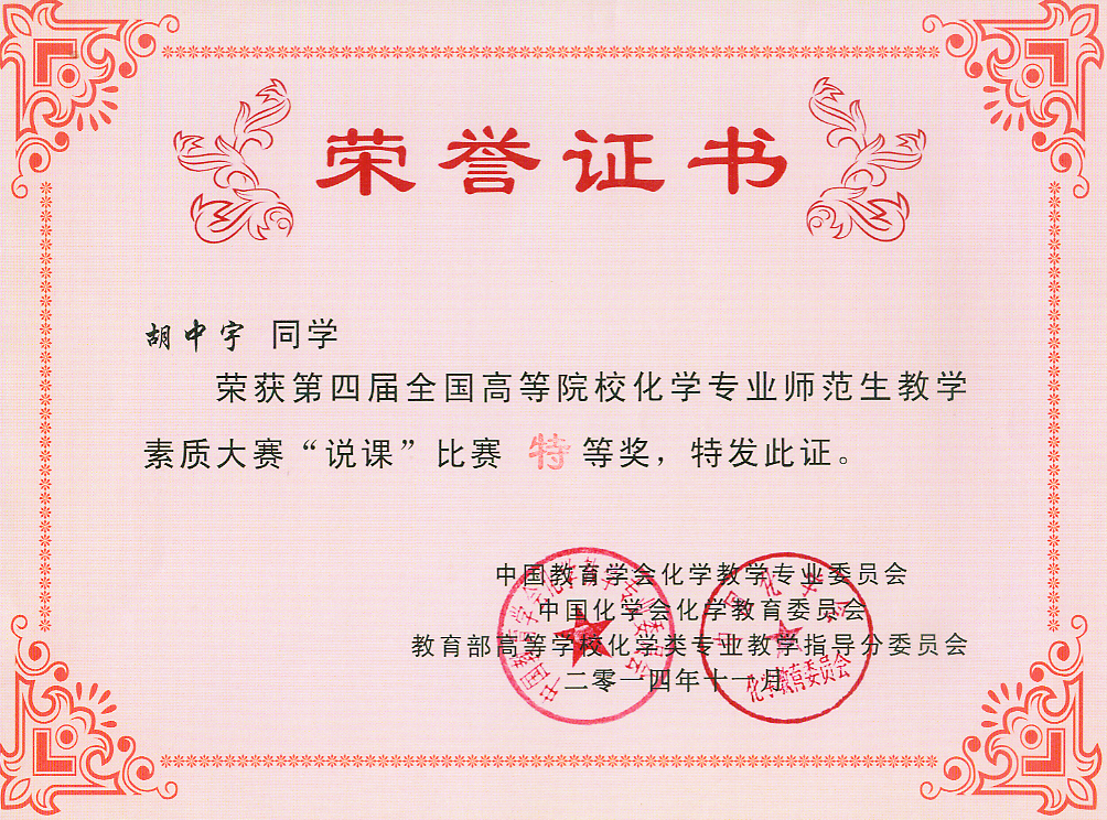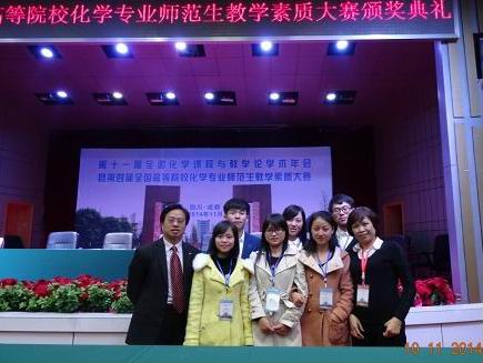 另外,在今年九月份由中国教育学会化学教学专业委员会、中国化学会化学教育委员会和教育部高等学校化学类专业教学指导分委员会联合举办的全国高等院校化学专业师范生教学素质大赛 (教学设计) 中,由我校化学化工学院推荐的57份优秀作品参加比赛,其中获一等奖8人,二等奖31人,三等奖13人。以上大赛每二年举行一次,全国各高等院校化学专业师范生培养单位均十分重视,通常由大三、大四两个年级学生为参赛对象(化学化工学院)。