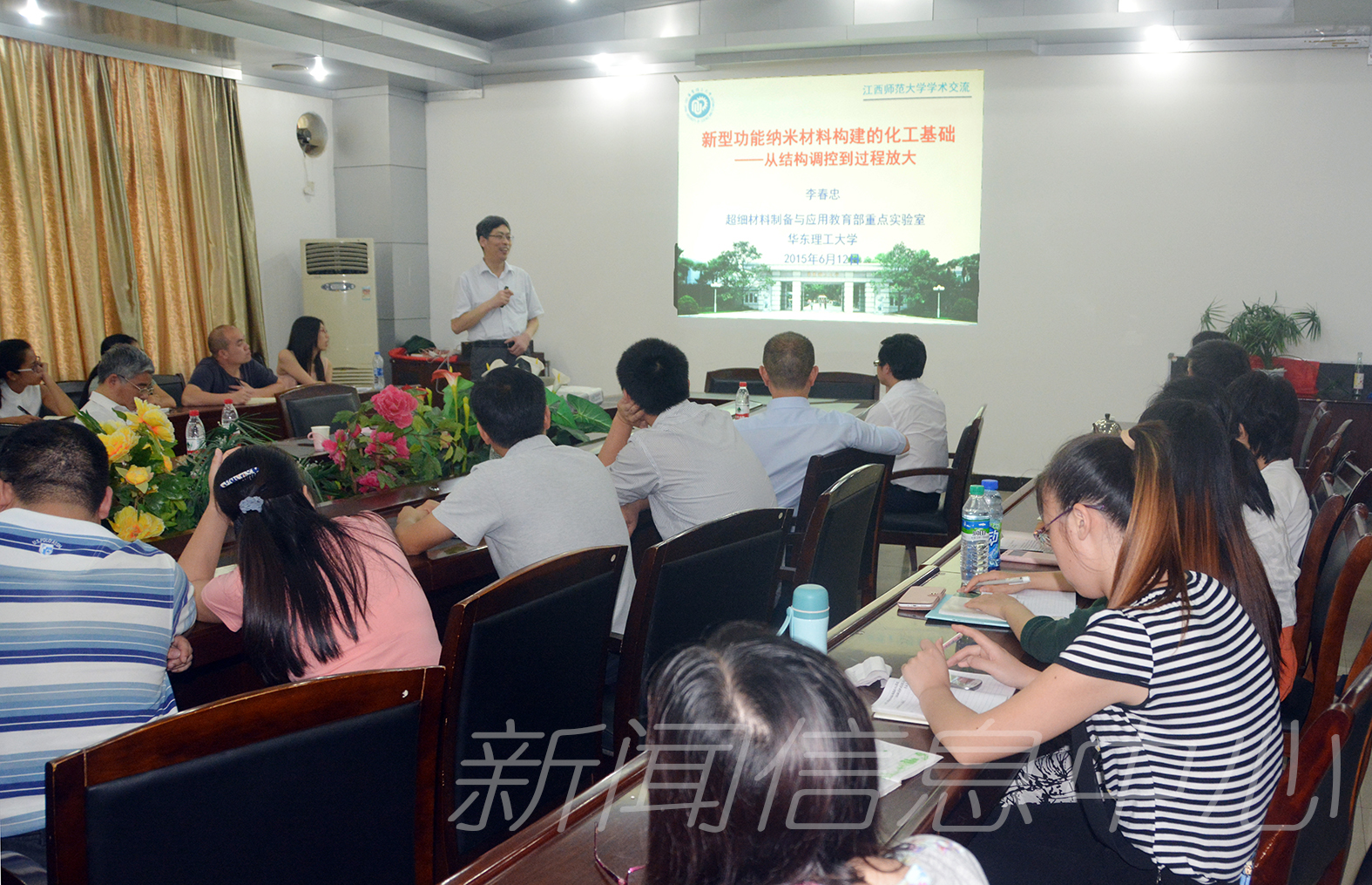 6月12日下午,教育部特聘教授、国家杰出青年基金获得者、华东理工大学李春忠教授应邀做客“瑶湖讲坛”第103期,作题为“新型功能纳米材料构建的化学基础——从结构调控到过程放大”的学术报告。学院部分师生代表生参加报告会。
