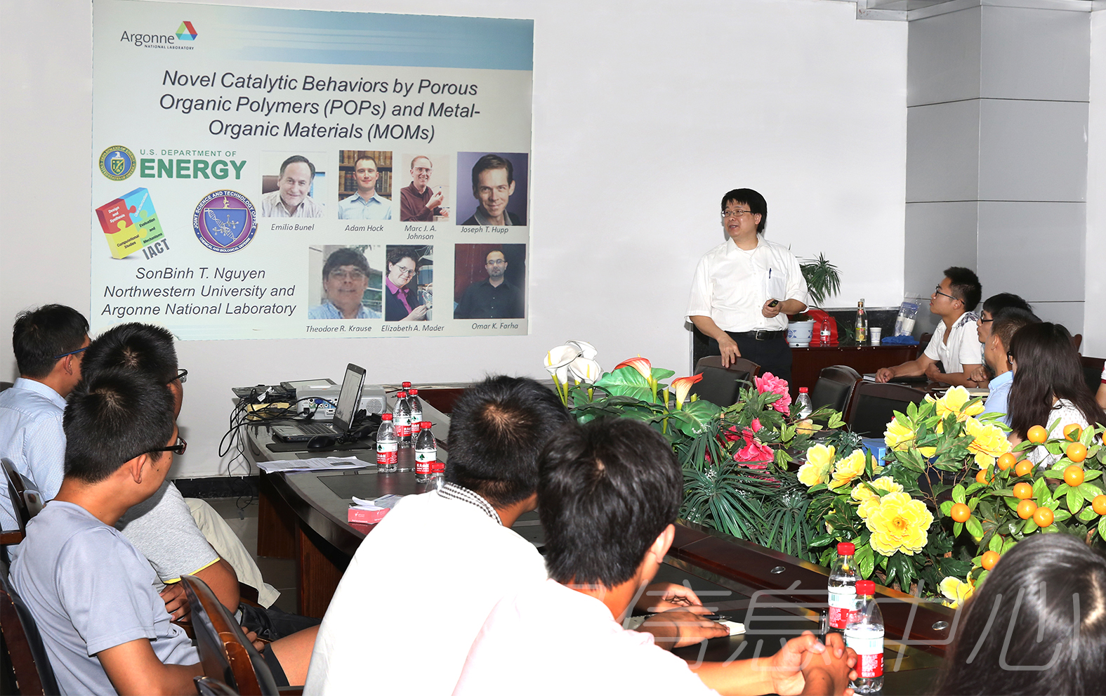 在报告中,SonBinh T. Nguyen教授介绍了一种新型催化途径——多孔有机聚合物(POPs)和金属有机材料(MOMs)催化及其部分相关研究成果。SonBinh T. Nguyen教授幽默风趣的语言和独到深刻的见解,得到在场师生的一致好评。