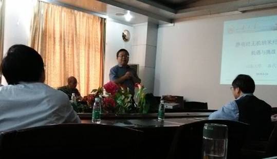 陈代荣教授的报告题目为“静电纺无机纳米纤维面临的挑战”。他结合自己的研究经历,给大家详细介绍了其近十年的研究成果。其科研团队不仅成功制备了柔性无机米纤维,而且在性能方面也做到了最高。纯氧化铝纳米纤维强度可以达到0.8-1.2Gpa,比一般加了聚合物的无机氧化铝纳米纤维高出了4-5倍,可以成功应用于航空航天领域,满足了耐高温高强度的材料要求。不仅如此,陈教授还耐心讲解了这种高性能无机纳米纤维的形成机理,使在场师生受益匪浅,陈教授严谨治学的精神值得大家学习。