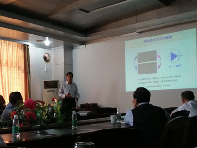 赵勇教授作了“纳米纤维的多级结构及其浸润性方面”的精彩报告,并根据其研究提出了“水的二极管”概念,对于亲/疏水材料的纳米纤维有深入研究,如超亲水/超疏水材料中研究了PI/SiO2复合的超疏水材料,同时具有耐热性还耐摩擦;单向透水多孔膜(具有普适性)疏液性可调;高吸油性多孔膜,水下吸油材料避免了二次污染;通过纤维取向制备了伤口结痂结构的伤口敷料及人造血管(PCL/PU)等等方面的工作,其研究成果多次发表在国际顶级杂志上。