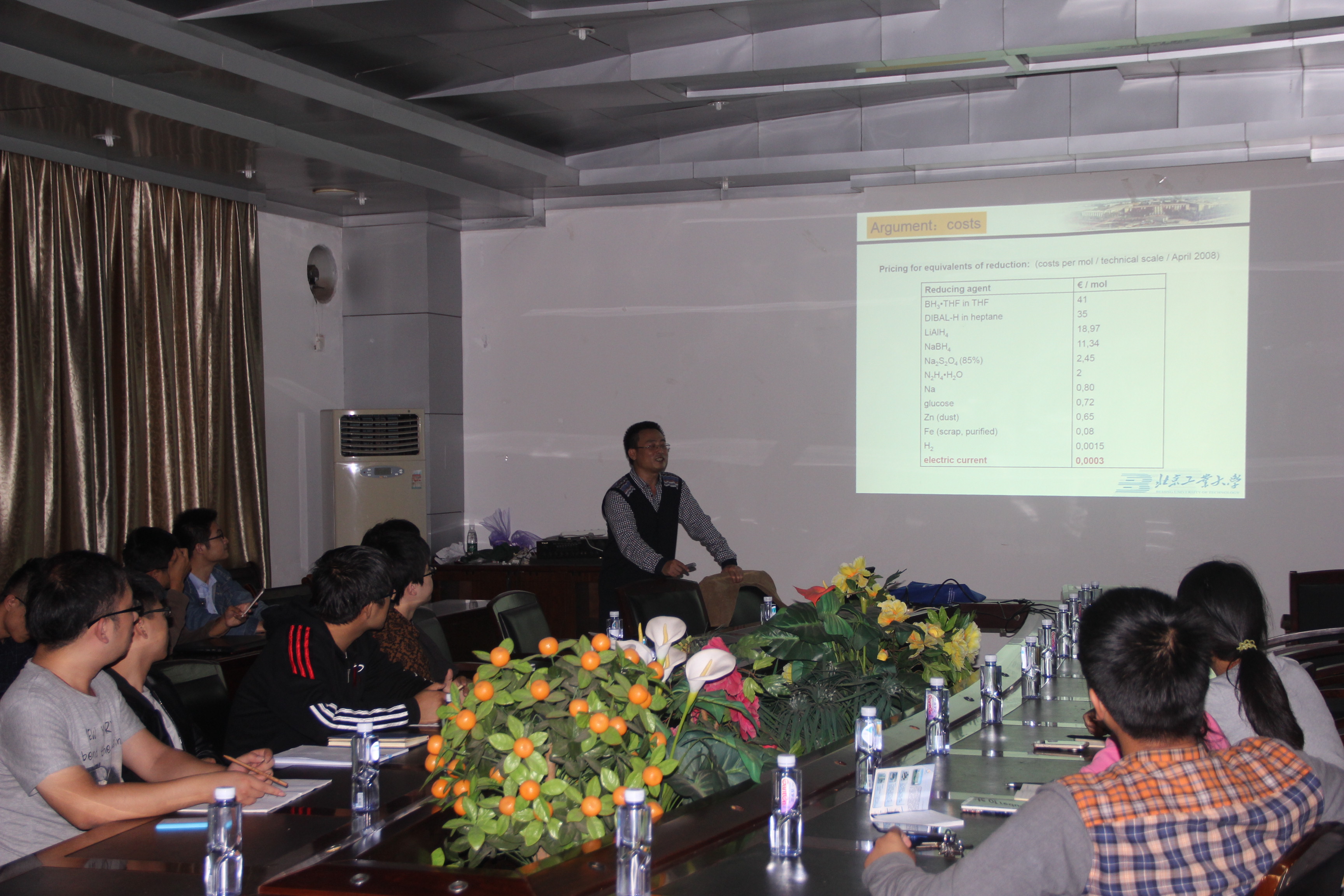曾程初教授首先用通俗易懂,简单明了的语言介绍了我们日常生活中无处不在的电化学在有机合成中的应用,并详细指出了电化学在有机合成中所存在的一些问题和解决的方法。然后,曾程初教授详细阐述了自己课题组在电化学领域中一些最新研究成果,其中包括有机电催化剂的设计合成和应用,电化学在天然产物中合成中的应用以及电极参与的诱导反应等等。报告会结束后,现场师生也与曾程初教授进行了广泛的交流和热烈的讨论,让人受益匪浅。
