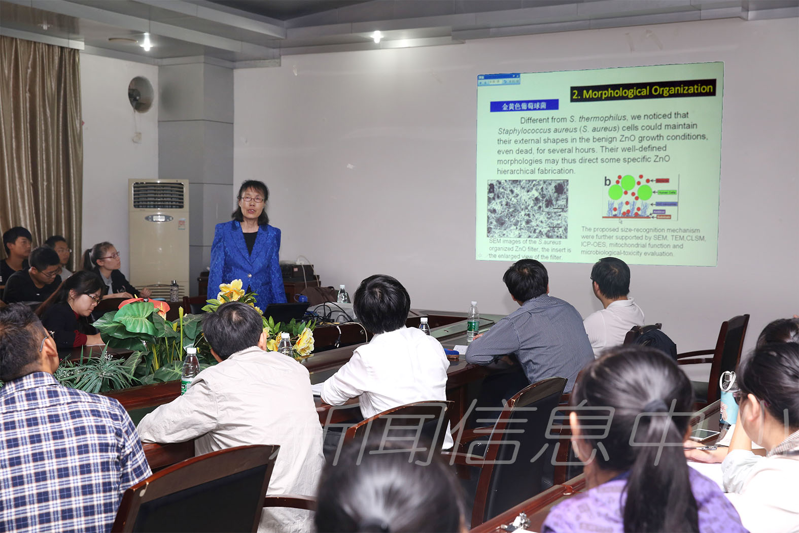 10月24日下午,中国科学院长春应用化学研究所杨秀荣院士应邀做客我校“瑶湖讲坛”,在化学化工学院5513会议室作了题为“基于生物质的纳米结构和纳米材料的制备和应用”的学术报告,化学化工学院师生100 余人参加了报告会。