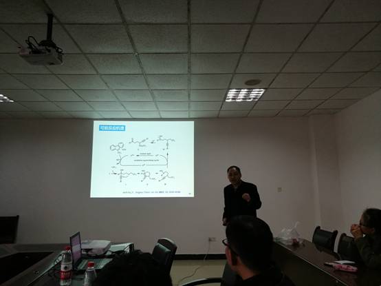 报告会上,朱晨教授详细介绍了他课题组自建组以来在自由基参与的碳碳键高效转化方面的研究工作,介绍的内容包括通过自由基碳碳键开环来实现远端碳的官能团化反应以及自由基参与的碳碳迁移实现非活化烯烃的双官能团化等几方面工作。朱晨教授用简单易懂、风趣幽默的语言来展示自由基化学的无限魅力,让与会的师生受益匪浅。会后,朱晨教授与参会师生就相关问题也进行了深入的讨论。