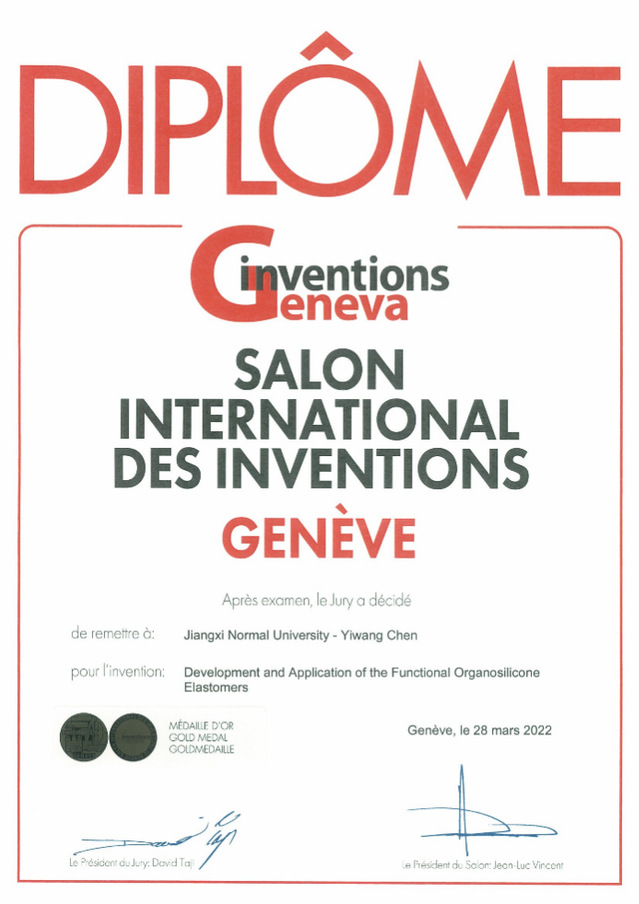 近日,第49届日内瓦国际发明展(International Exhibition of Inventions of Geneva)对外公布获奖名单,我校陈义旺团队的科研成果“功能有机硅弹性体的开发与应用”荣获金奖,自主创新成果得到世界权威认可。