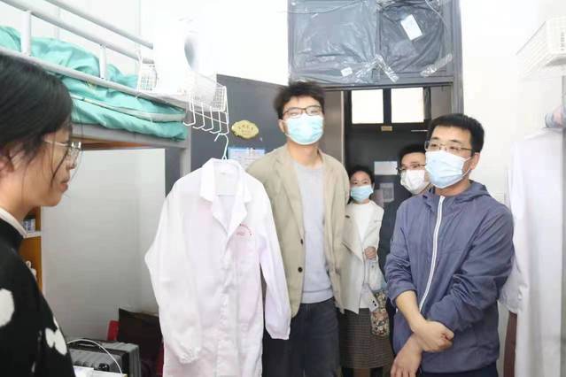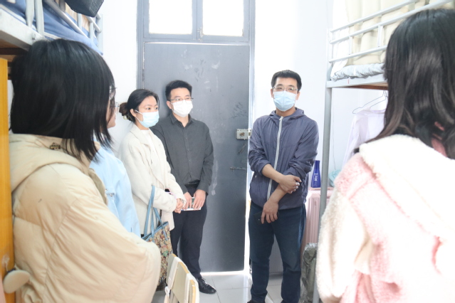 汪书记一行走进各个宿舍传达省委易炼红书记在全省疫情防控调度会上强调的“控得住是硬道理,不过头是硬要求,能统筹是真本领”精神,他要求学生干部、学生党员带领广大学生遵守学校要求,不聚集,做好个人防护,共克时艰;寝室长要及时发现同学们的困难,及时关心帮助,对生病的同学更要及时报告及时送诊,他强调,辅导员要掌握到每位同学的情况,做好台账,做到心里有数,才能把工作做细做实。