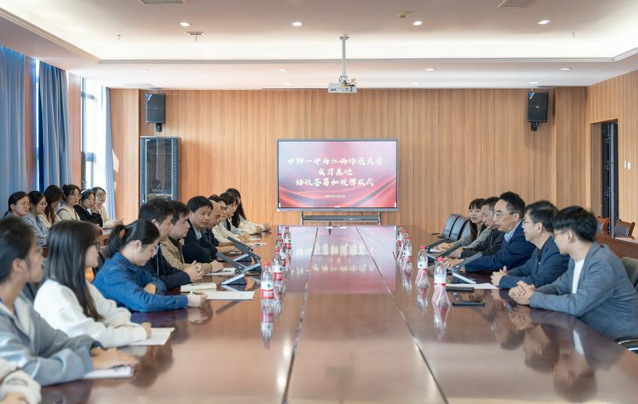 中阳一中校长丁星华、校党委书记朱小荣、副校长黄凯民等校领导接待了李处长一行。卢章辉介绍了化学与材料学院基本概况和师范生培养工作,并对中阳一中为我院师范生提供宝贵的实习机会表示感谢。李玮指出,在此次共建实践基地的基础上,双方将进一步探讨基础教育与高校协同发展渠道,争取在高校与地方基础教育深度合作中结出丰硕的成果。双方围绕基础教育、教学实习、毕业生就业等进行了深入交流。随后,双方代表签署了本科师范生实习教育基地建设协议并进行了授牌仪式。