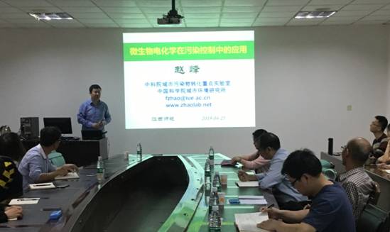 2019年4月25日下午,国家优青青年基金获得者,中科院城市环境研究所赵峰博士应邀来我院讲学,在方荫楼会议室作了题为“微生物电化学技术在环境中的应用”的学术报告,报告会由化学化工学院汪莉教授主持,化学化工学院师生参加了报告会。