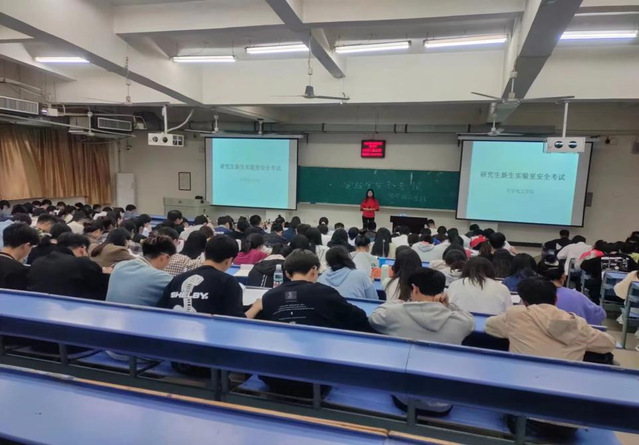 在举办新生安全知识讲座后,10月16日晚上,化学化工学院在惟义楼7102举行了新生实验室安全考试。此次考试由熊琦伟老师组织实施, 197名学生人参加考试,8名同学缓考。