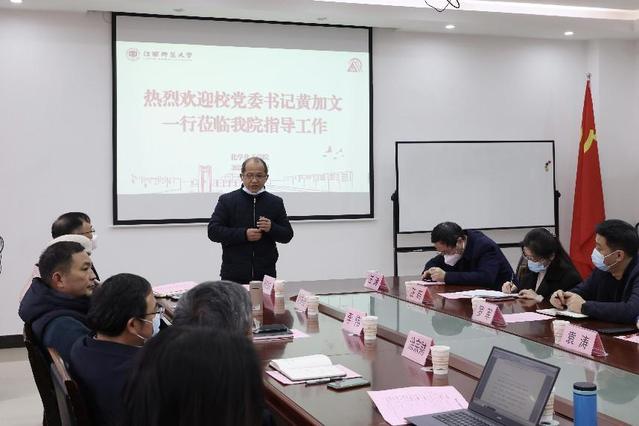 1月9日上午,校党委书记黄加文,校党委委员、副校长涂宗财,到化学化工学院、生命科学学院、健康学院召开调研座谈会,听取学院发展情况汇报、学科带头人及老中青教师代表建议,厘清学院发展思路。党(校)办、组织部、研究生院、教务处、科技处、人事处、财务处、资产与后勤管理处等相关职能部门负责人陪同调研。