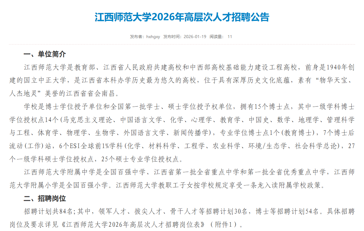 江西师范大学2026年高层次人才招聘公告