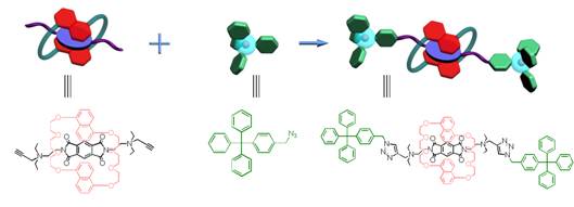 B: 基于环状分子对线状小分子的分子识别构筑的[2]准轮烷。示例如下: