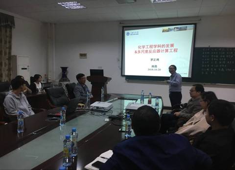 2018年10月20日下午3点,上海交通大学,特聘教授,国家杰青、博士生导师罗正鸿教授,应邀来我院学术交流讲学,作了题为“化学工程学科的发展&多尺度反应器计算工程”的学术报告。