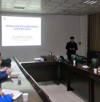 2019年1月11日上午,重庆大学李俊教授应邀来我院讲学,在方荫楼会议室作了题为“高效电化学能源转化电极强化及其多相传质特性”的学术报告,报告会由化学化工学院陈水亮教授主持,化学化工学院的师生参加了报告会。