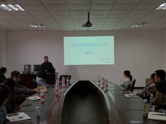 2019年3月16日上午10:30,江苏大学“金山学者”特聘教授陈元平教授应邀到我校进行学术交流,在方荫楼5510会议室作了题为“二维材料的结构预测及其电子性质研究”的学术报告。报告会由化学化工学院高兴发教授主持,化学化工学院的师生参加了报告会。