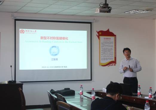 2019年11月22日下午14:30,河南师范大学江智勇教授应邀做客我校瑶湖讲坛,在方荫楼5区5510会议室作题为“新型不对称氢键催化”的学术报告。学院和国家单糖中心的师生参加了此次报告会。