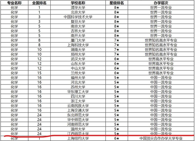 近日,艾瑞深校友会网最新发布校友会2020中国一流专业排名,我院“化学”专业获评五星专业,位居中国一流专业行列,并列位处全国第24位,全国师范大学第4位,江西省第一位。这是继2019年入选国家级、省级一流本科建设专业,2015年获批化学国家级实验教学示范中心,以及2007年入选国家级特色建设专业之后,“化学”专业再获殊荣,充分显示了我院办学实力和学科发展水平。
