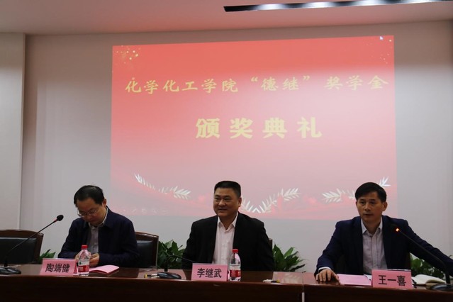 王一喜简要介绍了“德继奖学金”的由来,对89级姜德盛、李继武两位优秀校友捐设“德继奖学金”表示感谢。他指出,不仅是给母校80周年华诞特殊的礼物,同时它所蕴含的纪念意义不容忽视,这种向上的精神需要师生代代传承;奖学金重在“奖”不在“金”,希望获奖的同学们要戒骄戒躁,在学习上更努力,思想上更先进,工作上更勤奋,取得更好成绩,作出更示范的榜样,传承奋进感恩的心;希望学院全体学生向获奖同学学习,志存高远、脚踏实地,珍惜韶华、学好知识,勤于实践、增长才干,做人理想、有追求,有担当、有作为,有品质、有修养的时代青年。
