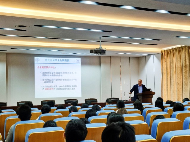 在报告中,孙忠明教授首先介绍了负价全金属团簇的研究背景及合成技术、方法和策略,继而详细介绍了一些代表性全金属芳香性团簇的合成及成键,并对芳香性团簇性能作了初步探索研究。报告会后,孙忠明教授与参会师生就相关学术问题进行了热烈的讨论。