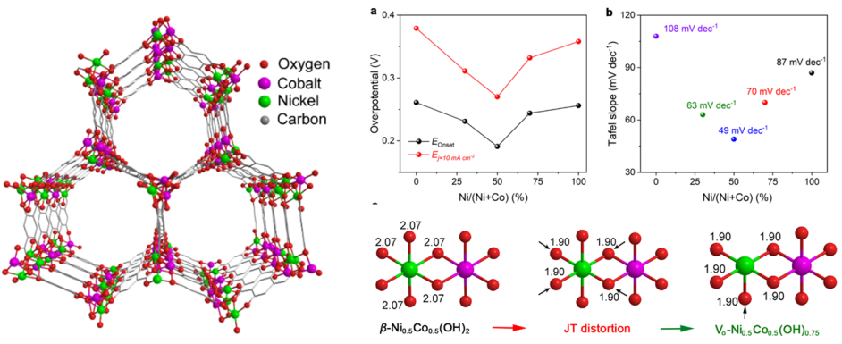 图1 CoNi-MOF-74结构演化及不同金属比例对OER活性的调控