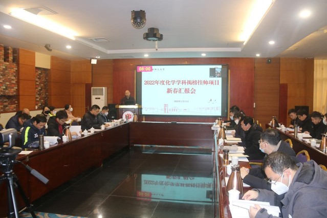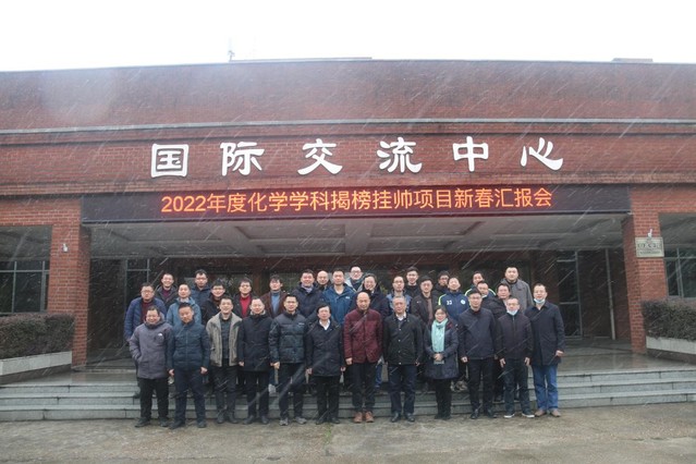 为深入贯彻党的二十大精神,落实校领导调研时强调“在更高质量一流学科的建设上要有大担当”的指示要求,1月15日上午,2022年度化学学科揭榜挂帅项目年终汇报会在白鹿会馆举行。国家杰青陈义旺教授、罗军华研究员作为点评专家出席会议,会议采取线上线下相结合方式进行。化学化工学院、国家单糖化学合成工程技术研究中心、氟硅能源材料与化学教育部重点实验室、高等研究院、先进材料研究院、生命科学学院、健康学院等单位70余名研究人员参加会议。
