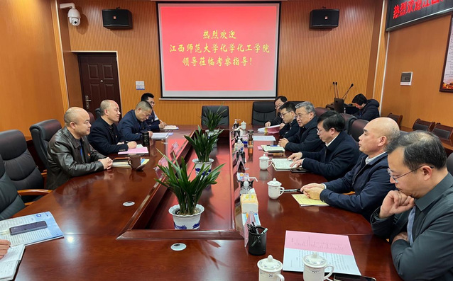 为加强学院和相关产业的合作,提升服务地方经济能力,2023年2月20日下午,化学化工学院党政班子成员及实验室管理中心负责人一行七人赴江西省化学工业高级技工学校考察,交流合作事宜。江西省化学工业高级技工学校党委书记卢秋晓、校长王哲等陪同考察并组织座谈。