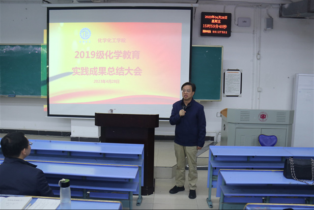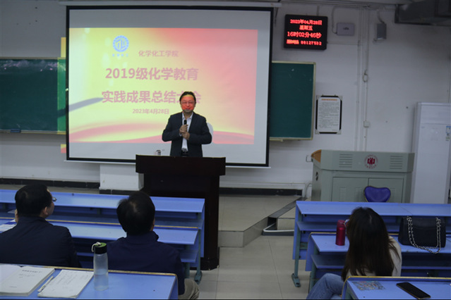 为推动教育实践工作的深入开展,加大宣传教育实践的行为规范和意义,我院于4月28日下午在惟义楼7402教室开展2019级化学本科教育实践成果总结大会。会议出席人员有教师教育处处长黄友华、学院副院长陶端健、化学系主任张小亮、学科教学学位点负责人姜健文、教育实践校内指导教师汪秋英和管华,以及2019级、2020级化学师范生代表。