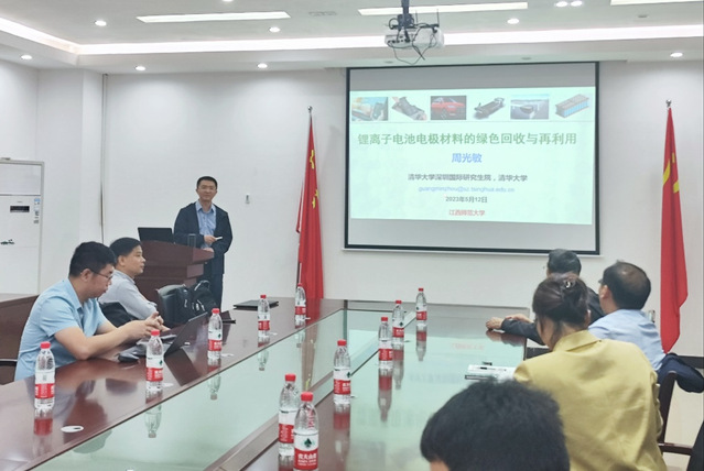 2023年5月12日,清华大学深圳国际研究生院周光敏副教授应邀来我院讲学,作了题为《失效锂电池电极材料的修复与再利用》的学术报告。周光敏老师针对废弃锂离子电池电极材料的清洁回收问题,从低碳发展和产业化角度出发,详细讲述了废弃锂离子电池在修复、再生、高值化利用等方面的研究成果,强调了废弃锂离子电池回收在环境保护、资源利用和产业应用等方面的重要意义。报告会后,周光敏老师与师生进行了积极的交流和探讨,并详细回答了在座师生的提问,使广大师生受益匪浅。
