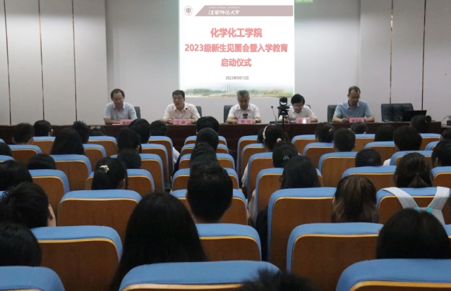 大会在奏唱国歌中拉开序幕。执行院长钟声亮教授致辞,热烈欢迎全体新同学的到来,并简要介绍了学院情况。钟院长从“有奋斗精神”、“有科研追求”、“有规划意识”三个方面对新生在人生新阶段的学习和发展进行了殷切的叮嘱,期望同学们以战略思维裁剪全局,以战略定力执着行动,努力在师大读出大学的意义、人生的意义,在科技报国的伟大征程中成就更加美好的人生。教师代表汪莉教授从学习方法的角度,给予同学们学习建议。老生代表2020级本科生田瑞婷发言,她表示,在学院的这三年不仅学到了知识还锻炼了能力,希望学弟学妹们可以勇于探索,做好在校期间的职业生涯规划。2023级本科生新生代表邹鑫鑫发言,她表示,希望在未来的大学学习中,可以在拼搏与进取中实现自我价值,在创新与实践中为民族复兴凝聚磅礴的青年力量。2023级博士研究生新生代表管华发言,她从“我为什么选择化院、我会怎样适应新环境、我能为化院做什么”三个方面向同学们提供大学学习新思路。最后,院党委书记熊斌以“资深老学长”的身份给新生提出了三点建议:将小我融入大我,苦练本领,科技报国;无愧于伟大时代,自立自强,勇于登攀;从知道迈向做到,走好新时代青年的长征路。他指出,希望大家能秉承“化物臻工,学博至理”的院训,抱定初心,向梦而行,做一名新时代的奋斗者。何纯挺老师开展了以“我和我的化学”为主题的“开学第一讲”,向同学们分享了他与化学的不解之缘。