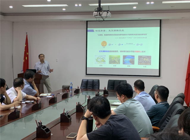 2023年9月26日,兰州大学舒兴中教授应邀在方荫楼5510会议室作了题为“还原交叉偶联:从碳化学到硅、锗化学”的学术报告。报告会由学院副院长宋永海教授主持,师生代表60余人聆听了报告。舒兴中教授的报告围绕“如何实现亲电试剂之间交叉偶联”这一主题,发展了三类新颖的“非活性键还原偶联化学”反应:“非活性C-O键还原偶联化学”,解决醇酮的高效转化;“氯硅烷和氯锗烷的还原偶联化学”,实现有机硅(锗)高效合成;“烯烃还原偶联化学”,实现多重选择性可控合成。会后舒兴中教授与参会师生就相关学术问题进行了热烈的讨论。