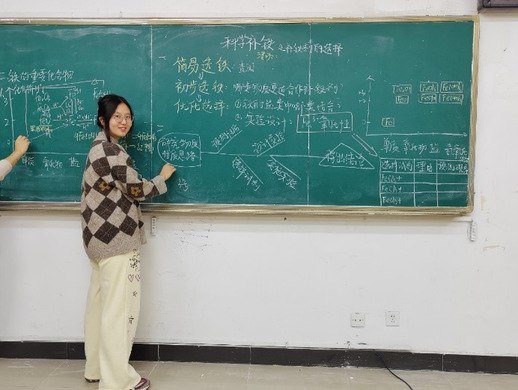 本次板书设计大赛加深了同学们对于粉笔书写规范的深刻认识,对师范生教学基本功的提升起到了积极的推动作用,在激发选手钻研教材、创新教学思路积极性的同时,也展现出选手的个人风采。