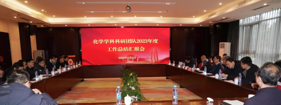 会上,16位化学学科科研团队负责人逐一汇报了2023年度教学、科研各项研究成果及后期工作计划,分析了团队发展中的短板与不足,并提出了科研团队重构的思考和建议。