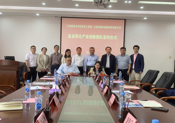 座谈会上,双方在实习实训基地推广、技术难题揭榜挂帅、化学品分析检测平台建设、人才项目合作申报等方面进行深入交流。学院就前期技术难题攻关项目向企业进行了阶段性反馈汇报。江西兴氟中蓝新材料有限公司与学院就盐卤药化产业省级创新团队合作建设达成意向并现场签约。这标志着新干县在招才引智工作中取得阶段性成效,也标志着学院在推进校企务实合作中迈上了一个新的台阶。