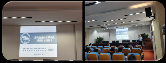 学院特别邀请了湖南大学张晓兵教授,他以《面向临床的分子成像新探针与新技术》为题,为导师们带来了一场内容丰富、启发性强的报告。张教授不仅分享了前沿的科研知识,还就如何提升导师指导能力提供了宝贵的建议。在互动环节中,师生们积极提问,张教授耐心解答,现场气氛热烈,充分展现了我院师生对学术探索的热情和对知识渴望的态度。最后,宋永海院长代表学院对张晓兵教授的精彩报告表示衷心的感谢,并对其为我院师生带来的学术盛宴表示赞赏。