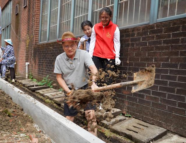 劳动中,陈芬儿、刘利民带领师生共同疏通排水沟,清运实验室改造工程废弃物。 在他们的带领下,师生们纷纷拿着锄头、铁锹、扫把等工具参加劳动,有的撬开排水沟 盖板,对排水沟里的淤泥进行清理,有的对沟外的垃圾和实验室改造产生的废弃物进行 清运,有的穿着雨鞋,在淤泥中奋战。经过两个小时的辛勤劳动,师生共疏通沟道150余米、清理外运淤泥污物5车,方荫楼4区、5区面貌焕然一新。