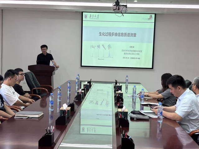 2025年8月28日上午,南京大学闵乾昊教授应邀在方荫楼5510会议室作了题为《生化过程多维信息质谱测量》的学术报告。报告由院长贺鹤勇教授主持,学校科技处处长杨振教授、副院长胡晓玉教授以及50余名师生代表共同聆听了此次报告。