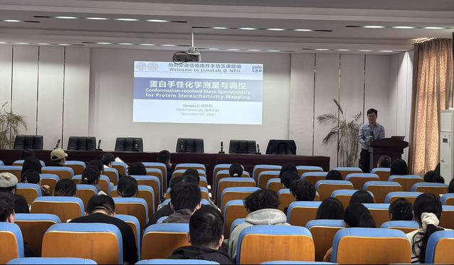 2025年11月10日上午,南开大学化学学院,特聘研究员、博士生导师,国家海外高层次青年人才计划入选者李功玉研究员应邀在方荫楼5511会议室作了题为《蛋白手性化学测量与调控》的学术报告。报告由学院副院长胡晓玉教授主持,汪莉教授、胡祥国研究员、许富刚教授等学院120余名师生代表共同参加了此次报告会。