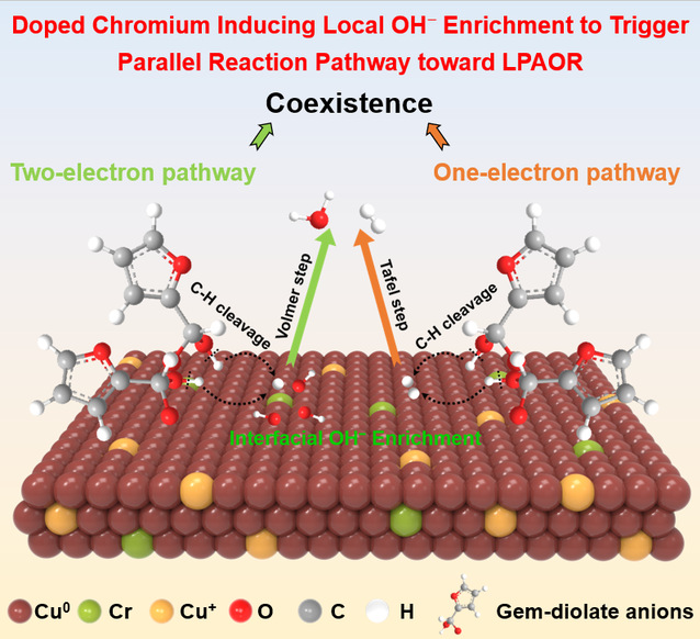 近日,我校陈义旺教授团队针对Cu基催化剂驱动的低电位醛氧化反应(LPAOR)展开了系统性研究。相关研究成果以《Unlocking Dual-Pathway Low-Potential Aldehyde Oxidation on Chromium-Doped Copper Catalysts》为题,发表于国际顶级期刊《Angewandte Chemie International Edition》(影响因子:16.9)。江西师范大学博士研究生吴兵、赣南师范大学博士研究生魏官萍和江西师范大学朱佩佩博士为共同第一作者,我校陈义旺教授、赣南师范大学李龙彬教授和南昌大学袁凯教授为共同通讯作者。