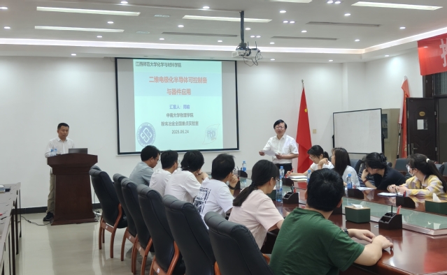 2025年5月24日上午,中南大学周喻教授应邀来学院作关于“二维电极化半导体可控制备与器件应用”的学术报告,报告在方荫楼5510会议室举行,由学院钟声亮教授主持,彭桂明教授等师生代表40余人聆听了此次报告。
